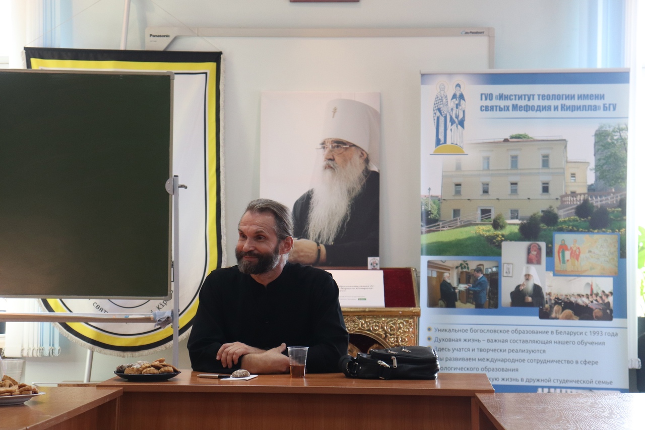 6 октября в Институте теологии БГУ прошло первое заседание богословского клуба, созданного по инициативе заведующего кафедрой богословия игумена Ермогена и студентов нашего института.